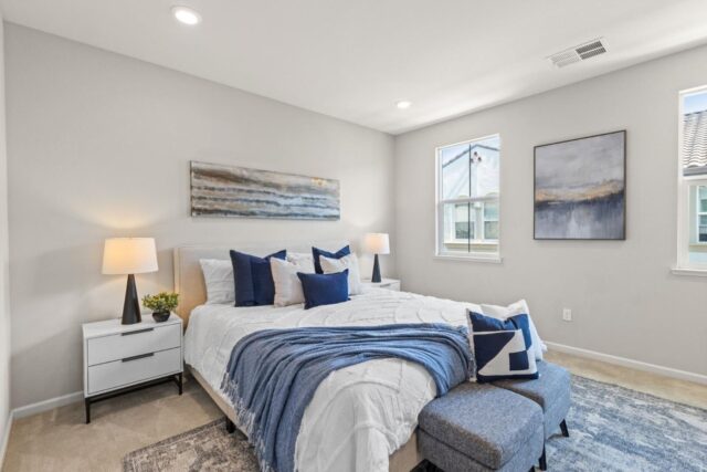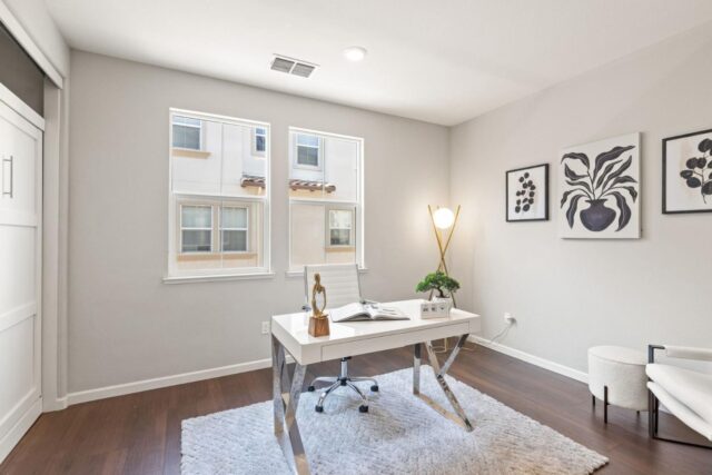 Welcome home, move-in-ready 3 bedrooms, 3 baths townhome offering 1,643 sqft of thoughtfully designed living space. Step into an open floorplan featuring vaulted ceilings, gleaming hardwood floor and custom 8″ interior doors throughout. The chefs kitchen boasts quartz countertops, a pantry, and seamlessly connects to the dining area and spacious living room ideal for both entertaining and everyday comfort. The home offers main level bedroom with murphy bed two spacious en-suites including a primary suite with a dual vanity Caesarstone countertop, walk-in closet, and an additional wall closet. The junior suite also features a private bath and its own walk-in closet. Enjoy comfort year-round with dual-zone heating and cooling, and appreciate the added touches like recessed lighting and built-in organizers, ample storage closets. Conveniently situated just steps from the Great Mall, VTA/BART station, offering quick access to major highways 880, 680 and 237. Enjoy abundant nearby recreation including Sal Cracolice Recreation Facility, Tennis Court, Playground, BBQ/Picnic area at Bob McGuire Park- all just around the corner also within close proximity to top-rated public and private schools. Low HOA, no rental restriction Dont miss your opportunity!