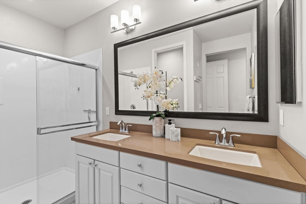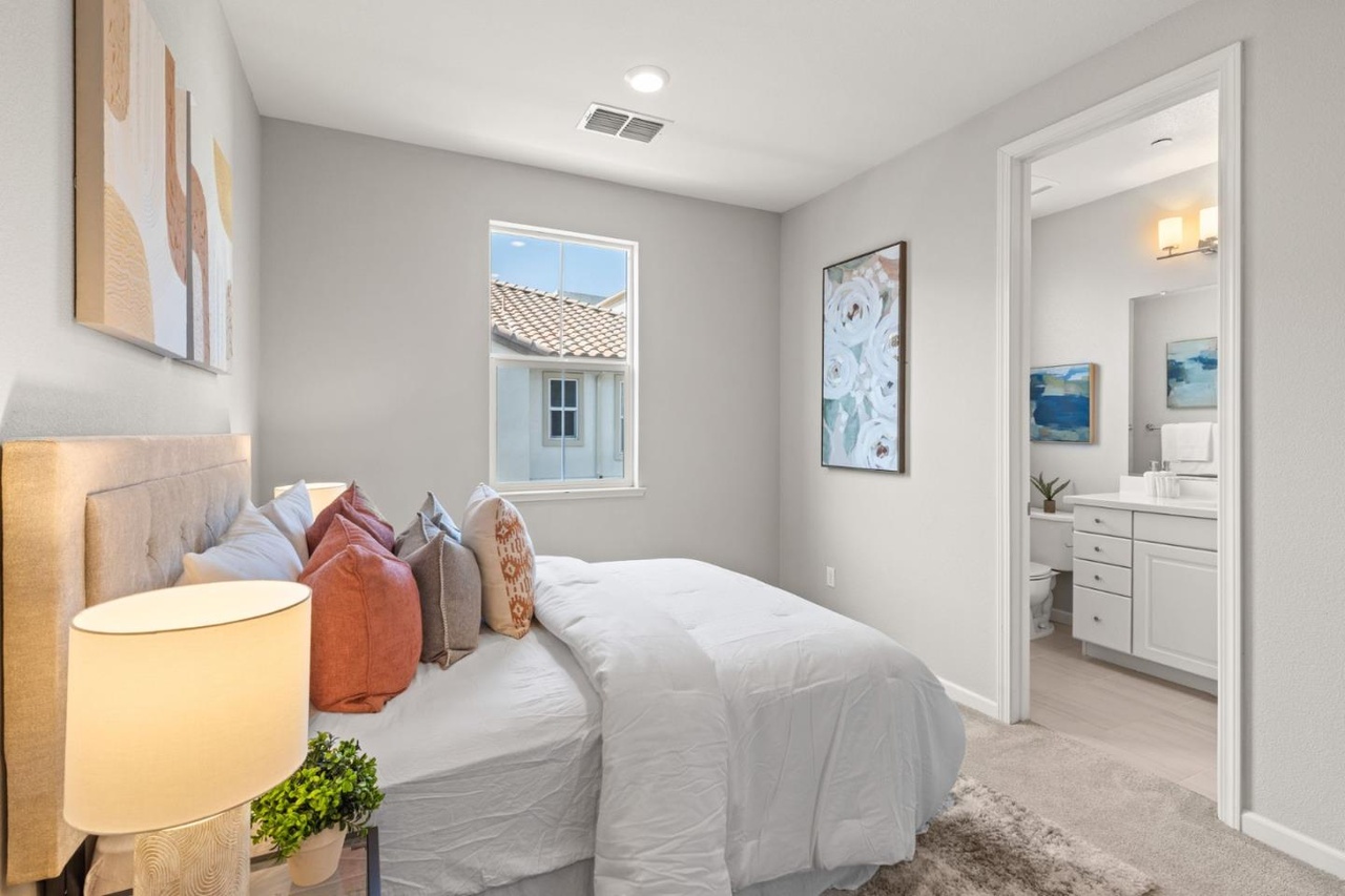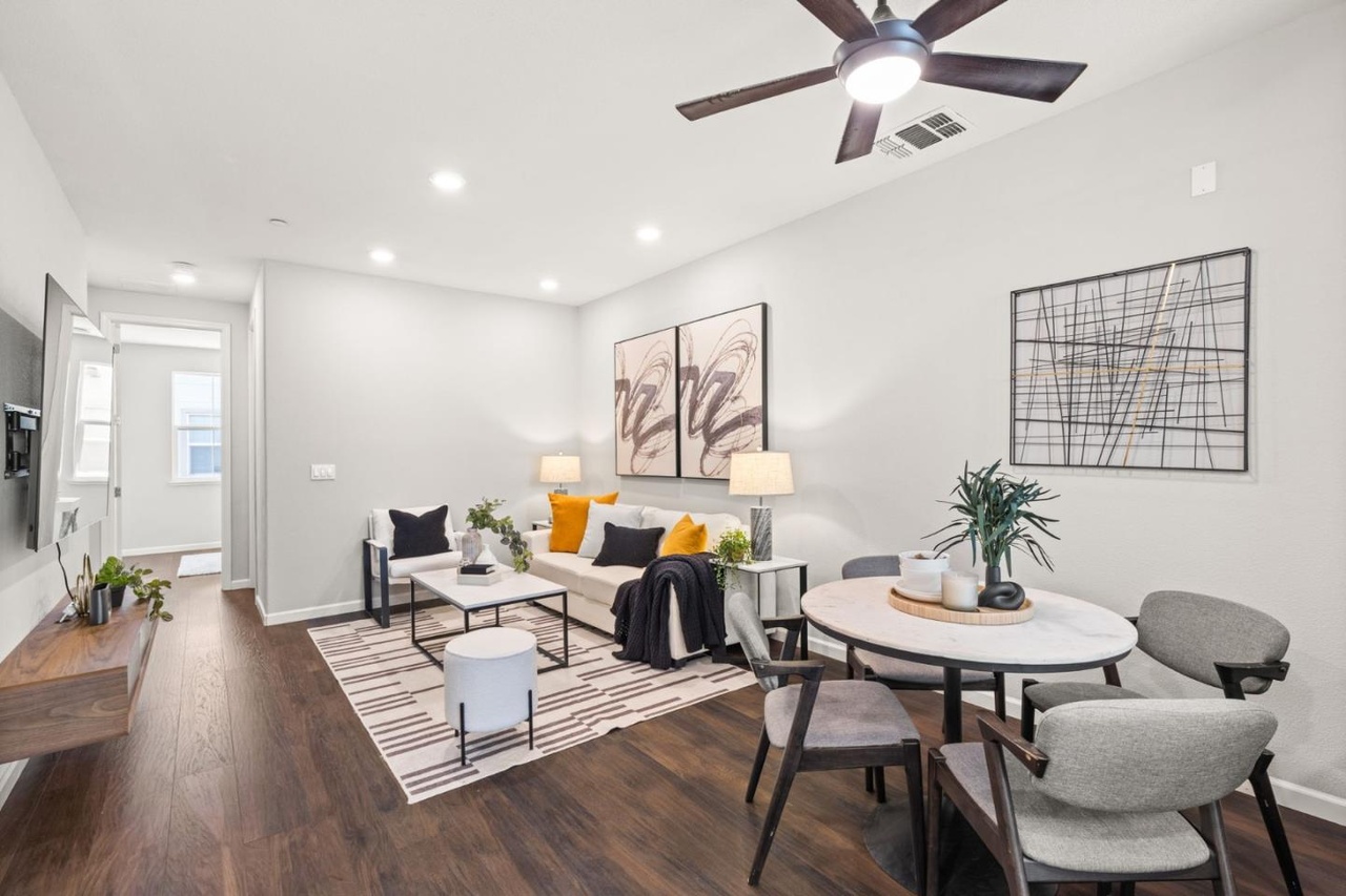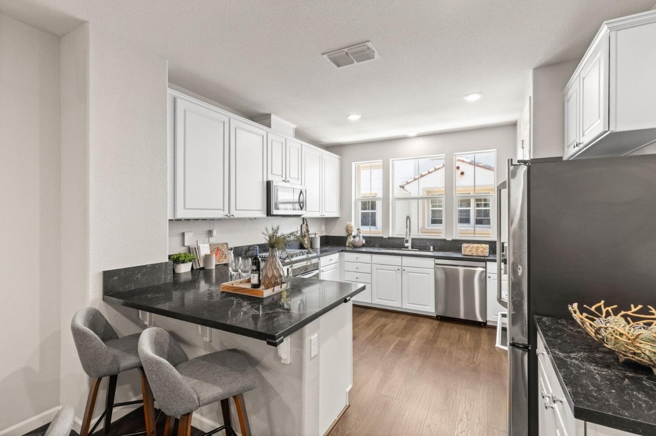 Welcome home, move-in-ready 3 bedrooms, 3 baths townhome offering 1,643 sqft of thoughtfully designed living space. Step into an open floorplan featuring vaulted ceilings, gleaming hardwood floor and custom 8″ interior doors throughout. The chefs kitchen boasts quartz countertops, a pantry, and seamlessly connects to the dining area and spacious living room ideal for both entertaining and everyday comfort. The home offers main level bedroom with murphy bed two spacious en-suites including a primary suite with a dual vanity Caesarstone countertop, walk-in closet, and an additional wall closet. The junior suite also features a private bath and its own walk-in closet. Enjoy comfort year-round with dual-zone heating and cooling, and appreciate the added touches like recessed lighting and built-in organizers, ample storage closets. Conveniently situated just steps from the Great Mall, VTA/BART station, offering quick access to major highways 880, 680 and 237. Enjoy abundant nearby recreation including Sal Cracolice Recreation Facility, Tennis Court, Playground, BBQ/Picnic area at Bob McGuire Park- all just around the corner also within close proximity to top-rated public and private schools. Low HOA, no rental restriction Dont miss your opportunity!