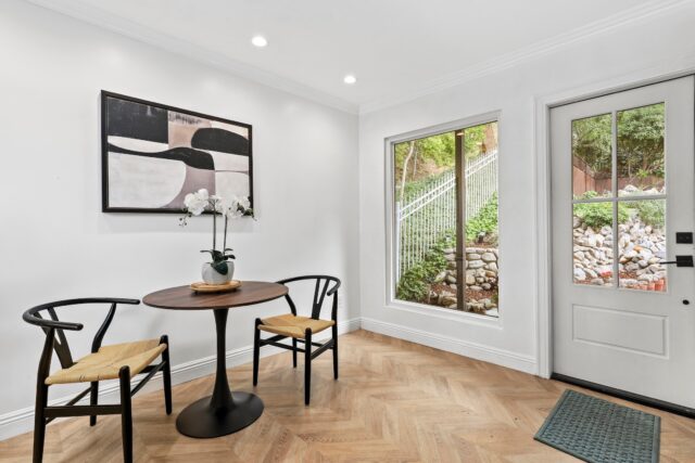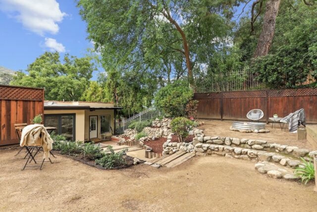 This enchanting Spanish Revival home is nestled in Glenoaks Canyon, a highly desirable and peaceful neighborhood. Walk up the Saltillo-tile walkway into this 3-bedroom, 2-bathroom home and step into the spacious living room featuring arched windows, custom built-in shelves and a cozy fireplace. Enter the bright and airy open floor plan into the updated kitchen with quartz countertops, stainless steel appliances and Kraftmaid cabinetry. The lower floor of the house includes a bathroom with walk-in shower and a bedroom with custom closet barn-doors. The second level of the house, built in the 1950’s, boasts a family room, a 2nd bath and two sunlit bedrooms. Moving into the backyard , you’ll find upper and lower levels, perfect for entertaining, gardening or outdoor dining. All trees have been trimmed annually by a professional arborist, and remained unscathed by strong January windstorms. The front yard has been professionally designed with drought-tolerant native plants for low maintenance and features hard-wired landscape lighting. Note that the semi-finished basement offers extra storage space, potential workshop or a blank slate for future projects. In addition to the safe and ample street parking, the unique detached one-car garage adds to the vintage charm. This home is a rare find – offering thoughtful upgrades, classic style and a coveted location.