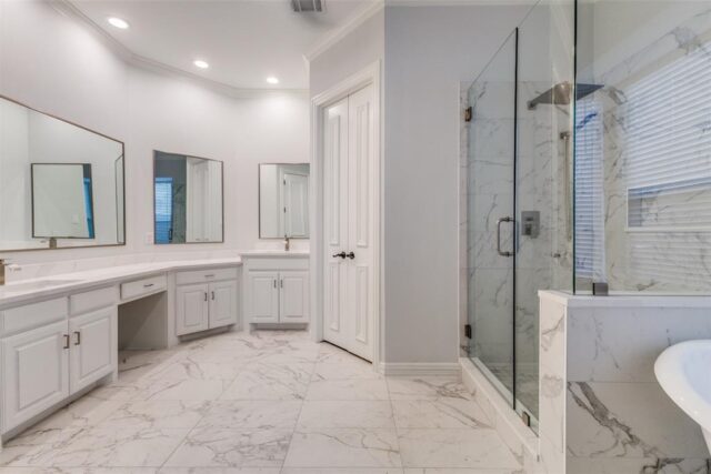 Your Dream Residence Awaits! Nestled on a beautiful tree lined street in prestigious Stone Lake Estates, this UPDATED home with POOL AND SPA offers comfort and elegance! FIVE generously sized bedrooms, 2 of them downstairs, 4 full baths PLUS a half bath! Step into the back yard and discover a sparkling pool with spa surrounded by a board on board fence and gated driveway! UPDATES IN 2024 AND 2025 include KITCHEN REMODEL featuring quartz counters and gorgeous backsplash, MASTER BATH REMODEL with soaking tub and amazing frameless shower, refinished hardwood floors, updated electrical and faucets, POOL REMODEL with pebble finish, new roof and gutters, plus more! Mature trees and lush landscaping greet you every day! Step through the gorgeous iron front door into a sun-drenched foyer with soaring ceilings, amazing chandelier and gleaming hardwood floors. The primary suite is a true retreat complete with ensuite bathroom where you’ll find a soaking tub, a separate frameless glass shower, dual vanities, ample counter space AND access to your outdoor oasis. The heart of the home welcomes you into a chef’s dream kitchen equipped with stainless steel appliances, quartz counters, and beautiful cabinetry with ample storage. Island with breakfast bar seating is perfect for casual meals or entertaining guests while you cook! Elegant tile and woodwork throughout this home! Don’t miss the opportunity to make this exceptional residence your new home!
